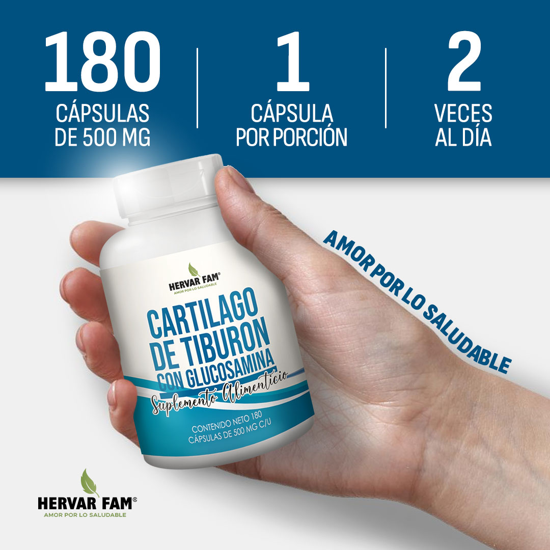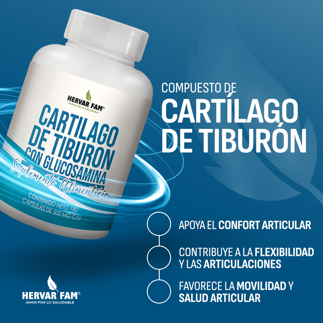 El cartílago de tiburón es un ingrediente de origen natural, rico en minerales, vitaminas y aminoácidos, ideal para deportistas o personas de la tercera edad.
